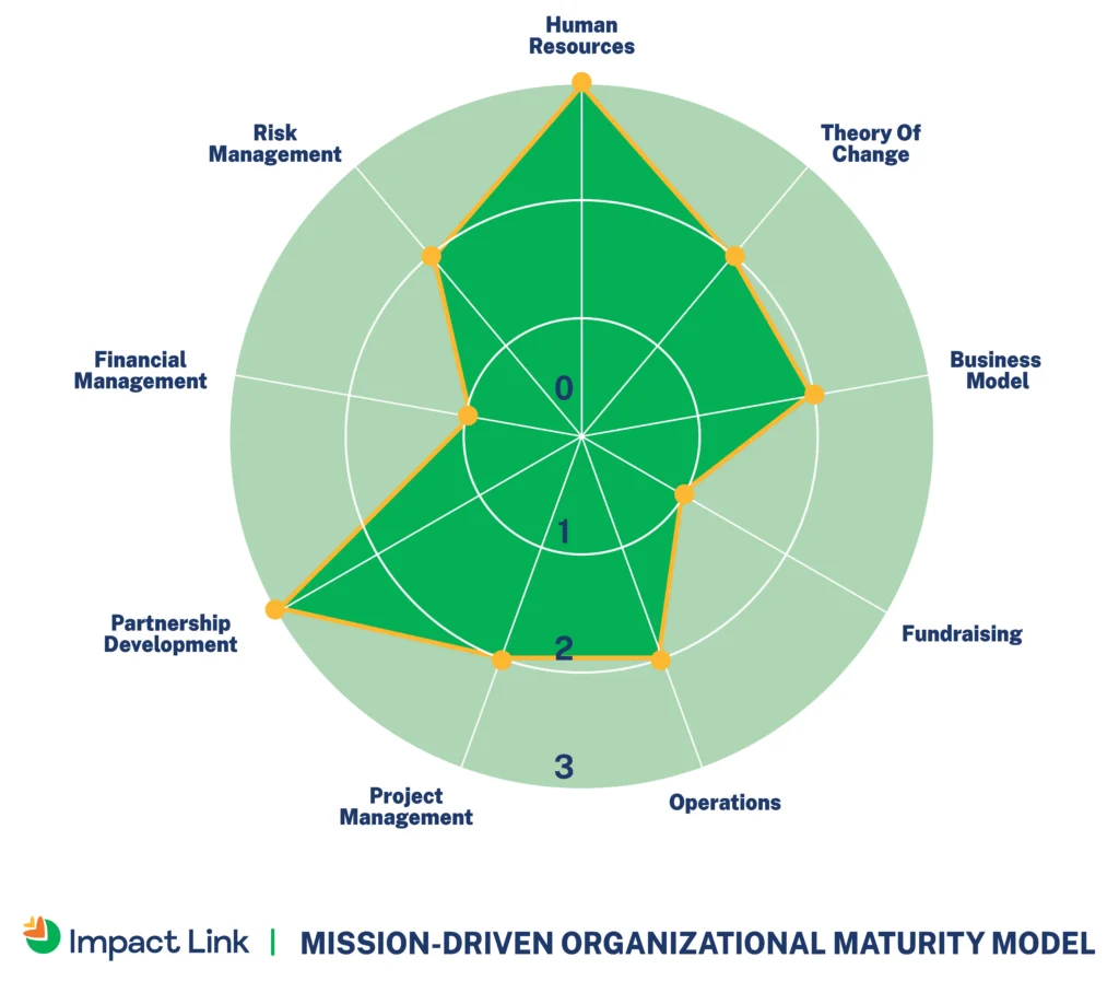 This shows where your organization is at in the organizational life cycle stage. It’s not about how long your organization has been around—it’s about how far it has come and where it is going