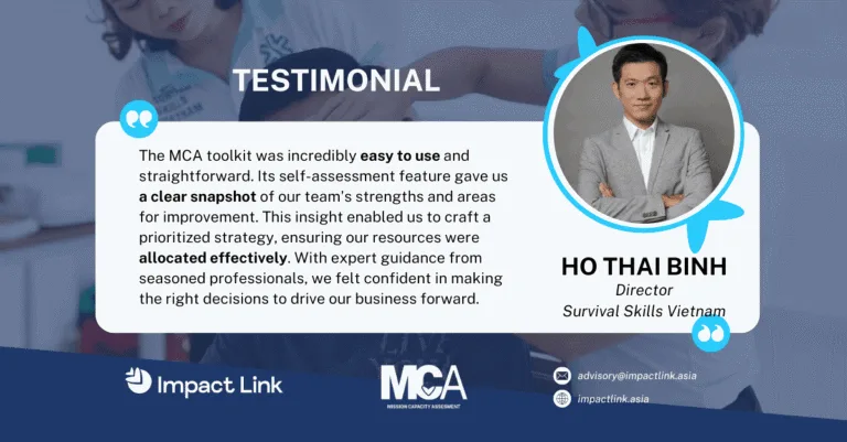 Recognizing the need for a sustainable approach, SSVN turned to the Mission Capacity Assessment (MCA) toolkit and the Impact Link Asia team for our expertise. The MCA provided a comprehensive evaluation of their strengths and areas for improvement, enabling SSVN to properly assess their resources to develop sustainable strategies.