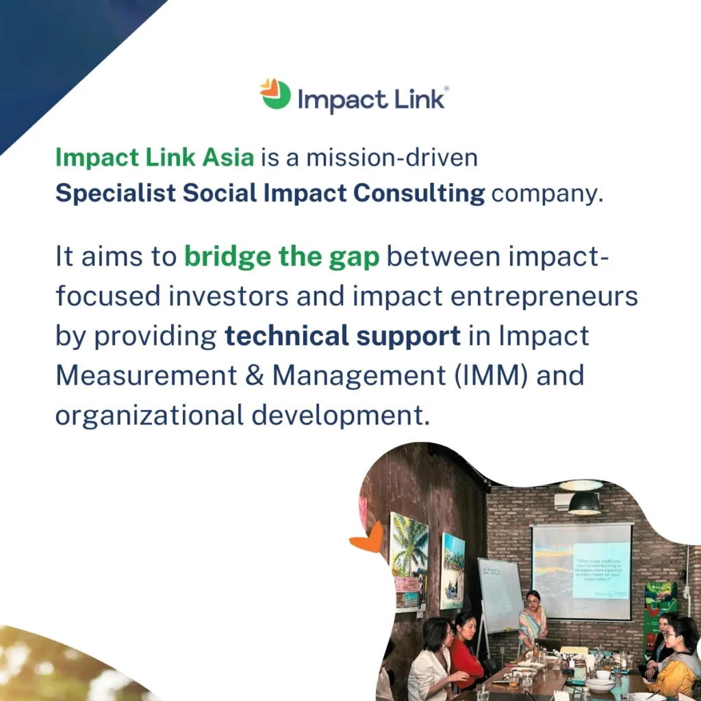 💹 At Impact Link Asia, we specialize in Impact Measurement & Management (IMM) and organizational development for impact entrepreneurs—helping them operate sustainably and maximize their social and environmental outcomes.